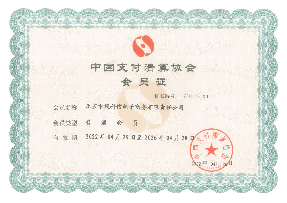 中国支付清算协会成立于2011年5月23日,是经国务院同意、民政部批准成立,并在民政部登记注册的全国性非营利社会团体法人,是中国支付清算服务行业自律组织。协会业务主管单位为中国人民银行。中投科信于2014年正式成为协会会员。